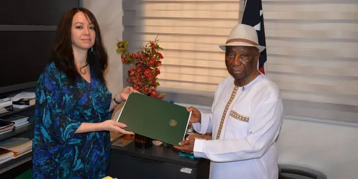حلت، الإثنين، سلمة بختة منصوري، كاتبة الدولة لدى وزير الخارجية مكلفة بالشؤون الإفريقية، بعاصمة جمهورية ليبيريا مونروفيا، أين استقبلت من طرف السيد جوزيف نيوما، رئيس جمهورية ليبيريا، بحسب بيان وزارة الخارجية. وخلال هذا اللقاء، سلمت كاتبة الدولة رسالة خطية إلى الرئيس الليبيري موجهة إليه من طرف رئيس الجمهورية، السيد عبد المجيد تبون، كما أبلغته تحياته الأخوية، وتطلعه لتعزيز علاقات الصداقة والتعاون التي تجمع البلدين. من جهته، أشاد الرئيس الليبيري بعمق العلاقات الثنائية، وبالمكانة المرموقة للجزائر على الصعيد الافريقي، مبديا تقديره للزيارة التي تقوم بها كاتبة الدولة الى بلاده. وتم خلال هذا اللقاء استعراض العلاقات الثنائية ومناقشة المسائل ذات الاهتمام المشترك.