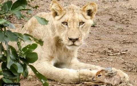 ونشرت صحيفة “ديلي ميل” البريطانية هذه الصور، التي ظهر فيها أسد وهو يقوم برعاية ظبي رضيع وحمايته، ويحمله في فمه ويتجول به وكأنه أحد صغاره، وكذلك قام الأسد بلعق الظبي كي ينظفه، وفي نهاية المطاف، حمل الأسد الظبي ومضى به بعيداً، ولم يتضح إذا ما كان قد واصل رعايته، أم أنه تحول إلى فريسة بالنسبة له.