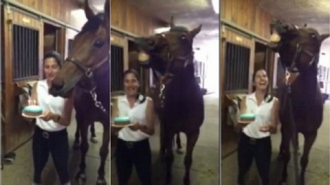 أصيبت الأمريكية جيسيكا واكر بالدهشة لحظة رؤية حصانها يتفاعل مع المفاجأة التي أعدتها له في الاسطبل برفقة ثلاثة من أصدقائها، إذ لم تكن تتوقع أن يطفئ حصانها الشموع التي أشعلتها له على قالب الحلوى المخصصة للاحتفال بعيد ميلاده، بنفسه.