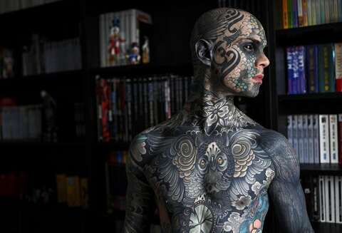 تصدرت قصة المدرس الفرنسي سيلفان هيلين الأخبار الغريبة حول العالم بعد أن قرر أن يُغطي جسمه بالكامل بالوشوم دون أن يترك مكان واحد دون أن يترك رسمة مميزة عليه.
