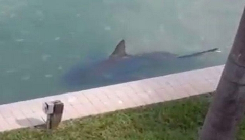 من هنا وهناك.. يُفاجأ بسمكة قرش في حديقة منزله الخلفية
