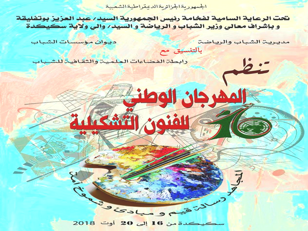 يستعد قطاع الشباب والرياضة بولاية سكيكدة لاستضافة أكثر من سبعين فنانا تشكيليا شابا (أقل من 30 سنة) من أكثر من 20 ولاية أكدت حضورها لفعاليات المهرجان الوطني السادس عشر للفنون التشكيلية من 16 الى 20 أوت الجاري الذي دأب القطاع على تنظيمه منذ ما يقارب الثلاثين سنة.