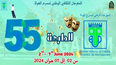 تحتضن ولاية مستغانم في الفترة الممتدة بين 2 و7 جوان المقبل فعاليات الطبعة الـ 55 من المهرجان الثقافي الوطني لمسرح الهواة.