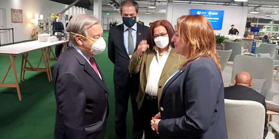 التقت وزيرة البيئة سامية موالفي على هامش مشاركتها في أشغال مؤتمر الأطراف السادس والعشرين للأمم المتحدة حول التغيرات المناخية المنعقد بغلاسكو المملكة المتحدة البريطانية، بعديد الشخصيات المهمة على المستوى الدولي.