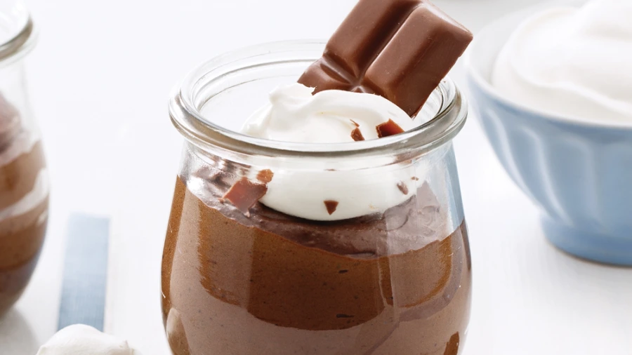 نفصل البياض عن الصفار ونضرب بياض البيض مع رشة الملح عندما يصبح على شكل رغوة، نبدأ باضافة السكر بالتدريج مع الخلط الجيد بالضراب حتى يتماسك بياض البيض ثم نضيف صفار البيض بالتدريج مع الفانيلا أو ممكن عطر الكراميل، نضيف القليل من بياض البيض على مزيج الشكولا والكريما ثم نعيد مزجه مع بياض البيض المتبقي بالتدريج بملعقة من الأسفل إلى الأعلى مباشرة، بعد امتزاج الخليط نتوقف لكي لا نخسر الهواء المتشكل بالموس، نفرغ المزيج بأكواب التقديم وتترك بالثلاجة لتبرد وتزين حسب الرغبة.