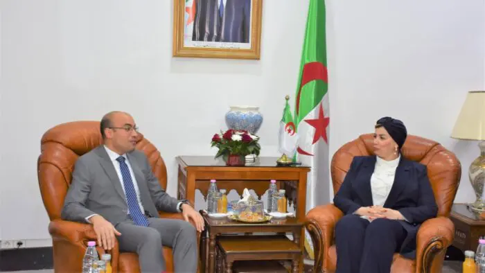 وخلال اللقاء استعرض، السيد سفيان شايب، أوضاع الجالية الجزائرية، مشيرا إلى ضرورة إطلاق مبادرات تضامنية تستهدف الفئات الأكثر حاجة. من جانبها أكدت الوزيرة استعداد وزارة التضامن الوطني للانخراط في كل المبادرات التي تقررها وترعاها السلطات العمومية بهدف دعم الجالية وتعزيز ارتباطها بالوطن وهو التوجه الذي يوليه رئيس الجمهورية أهمية خاصة. كما ناقش الطرفان إمكانية إشراك بعض أفراد الجالية الوطنية في المناطق الحدودية لا سيما النساء في البرامج التنموية التي أطلقها قطاع التضامن الوطني وعلى رأسها عمليات التكوين الموجهة للنساء الريفيات والتي تهدف إلى خلق مشاريع مدرة للدخل وتحقيق التمكين الاقتصادي لهن. يأتي هذا اللقاء في إطار التعاون المستمر بين مختلف القطاعات الحكومية لتعزيز التكافل الاجتماعي، وتوسيع نطاق البرامج الوطنية لتشمل الجزائريين داخل وخارج الوطن بما يضمن لهم الاستفادة من مختلف المبادرات الاقتصادية والاجتماعية.