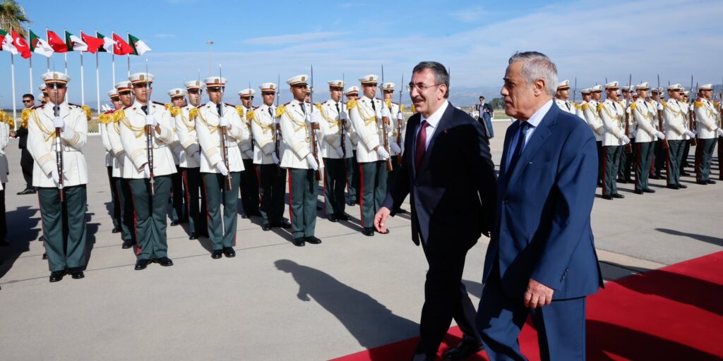 وكان في استقبال السيد جودت يلماز بمطار هواري بومدين الدولي، الوزير الأول، السيد نذير العرباوي، مرفوقا بوزير الطاقة والمناجم، السيد محمد عرقاب، وزيرة التضامن الوطني والأسرة وقضايا المرأة، السيدة كوثر كريكو، ووزير التجارة وترقية الصادرات، السيد الطيب زيتوني. وتعكس هذه الزيارة –حسب بيان لمصالح الوزير الأول– عمق العلاقات الثنائية الجزائرية-التركية التي تشهد حركية متميزة في المجالات الاقتصادية في السنوات الأخيرة، والتي رسم محاورها قائدا البلدين، رئيس الجمهورية السيد عبد المجيد تبون وأخيه الرئيس التركي، رجب طيب أردوغان. كما تأتي هذه الزيارة، في إطار مشاركة الجمهورية التركية كضيف شرف في الطبعة الخامسة والخمسين لمعرض الجزائر الدولي الذي ستنطلق فعالياته، اليوم الإثنين. وللإشارة، يرافق نائب رئيس جمهورية تركيا في هذه الزيارة، وفد وزاري هام، يضم وزيرة الأسرة والخدمات الاجتماعية ووزير التجارة، بالإضافة إلى العديد من رجال الأعمال وممثلي الشركات التركية المشاركين في معرض الجزائر الدولي وفي منتدى الأعمال الجزائري-التركي الذي ستنطلق فعالياته تحت إشراف وزير التجارة وترقية الصادرات، السيد الطيب زيتوني، ورئيس مجلس التجديد الاقتصادي الجزائري، السيد كمال مولى، مناصفة مع نظيريهما التركيين، وفقا لذات البيان.