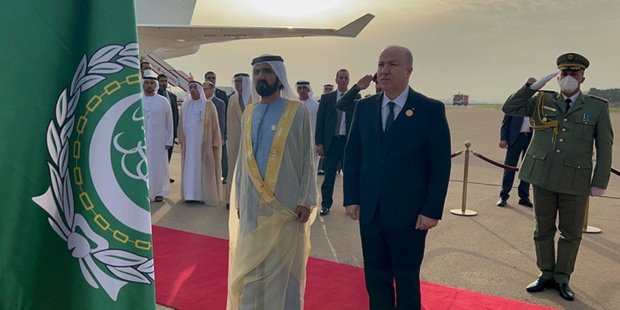 حل بعد ظهر اليوم الثلاثاء، بالجزائر، نائب رئيس دولة الإمارات العربية المتحدة، رئيس مجلس الوزراء، الشيخ محمد بن راشد آل مكتوم، الممثل الخاص لرئيس الإمارات العربية المتحدة، الشيخ محمد بن زايد آل نهيان، للمشاركة في الدورة ال31 للقمة العربية.