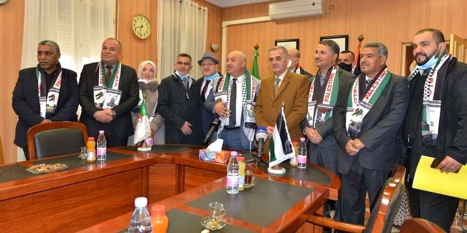 من جهته قدم سفير فلسطين بالجزائر، سردا للوضع الفلسطيني والإقليمي والدولي وطبيعة العلاقة التاريخية بين فلسطين والجزائر، وانهم أصحاب حقوق ونضال مشترك وموقف الجزائر الرسمي والشعبي مقدر ومحترم، نابع من أصالة وتاريخ مجيد، ولن يتم التراجع عن الثوابت سنصون وديعة الشهداء وسنحقق أحلامهم بتكاتف الجميع،والتطبيع لن يزيدنا إلا ثباتا وتمسكا بالحقوق.