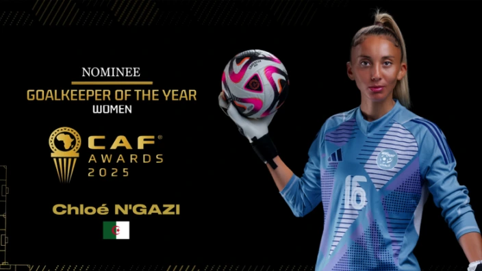 رُشِحت حارسة مرمى المنتخب الوطني للسيدات، كلوي يمينة نڨازي، لجائزة أفضل حارسة مرمى في القارة الإفريقية لسنة 2025، وفق ما أعلنه الإتحاد الجزائري لكرة القدم عبر موقعه الرسمي.