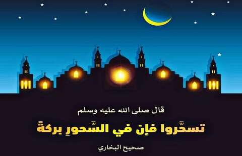 السحور سنة مستحبة، لقوله عليه الصلاة والسلام: “إن السحور بركة أعطاكموها الله فلا تدعوها” رواه أحمد، “البركة في ثلاثة: في الجماعة، والثريد، والسحور” رواه الطبراني، “تسحروا فإن في السحور بركة” رواه البخاري. والأمر في قوله: “تسحروا” للتوجيه والإرشاد، ولأجل ذلك علله صلى الله عليه وسلم بالبركة التي هي كثرة الخير. وروي أنه صلى الله عليه وسلم ترك السحور لما كان يواصل، فدل على أنه ليس بفرض، والوصال أن يصوم يومين فأكثر فلا يفطر بل يصوم النهار مع الليل. والبركة أصلها الزيادة وكثرة الخير، وسبب البركة في السحور أنه يقوي الصائم وينشطه ويهون عليه الصيام، بالإضافة إلى ما فيه من الثواب، فالذي يتسحر يبارك له في عمله، فيوفق لأن يعمل أعمالاً صالحة في ذلك اليوم، بحيث إن الصيام لا يثقله عن أداء العبادات والأذكار وسائر الطاعات، وعن سائر شئونه الحياتية الخاصة، بخلاف ما إذا ترك السحور فإن الصيام يثقله عن النفع العام لشدة الجوع وانخفاض نسبة السكر بالدم، فضلا عن الضجر بسبب الجوع والعطش وربما الصداع.
