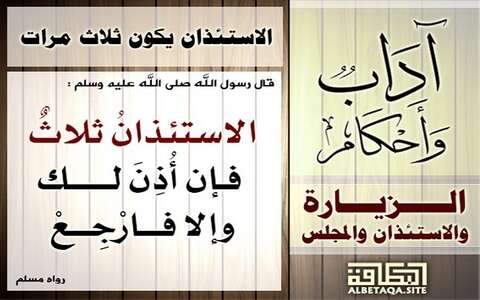 – أدب الاستئذان: ويتأكد ذلك في الأوقات التي يضع الناس فيها ثيابهم؛ كما قال الله تعالى: ” يَا أَيُّهَا الَّذِينَ آمَنُوا لاَ تَدْخُلُوا بُيُوتًا غَيْرَ بُيُوتِكُمْ حَتَّى تَسْتَأْنِسُوا وَتُسَلِّمُوا عَلَى أَهْلِهَا ذَلِكُمْ خَيْرٌ لَكُمْ لَعَلَّكُمْ تَذَكَّرُونَ ” النور: 27. فلا ينبغي أنْ تُقتَحَم هذه البيوت إلاَّ بعد الاستئذان الذي قَرَنَه الله تعالى بالإيمان.