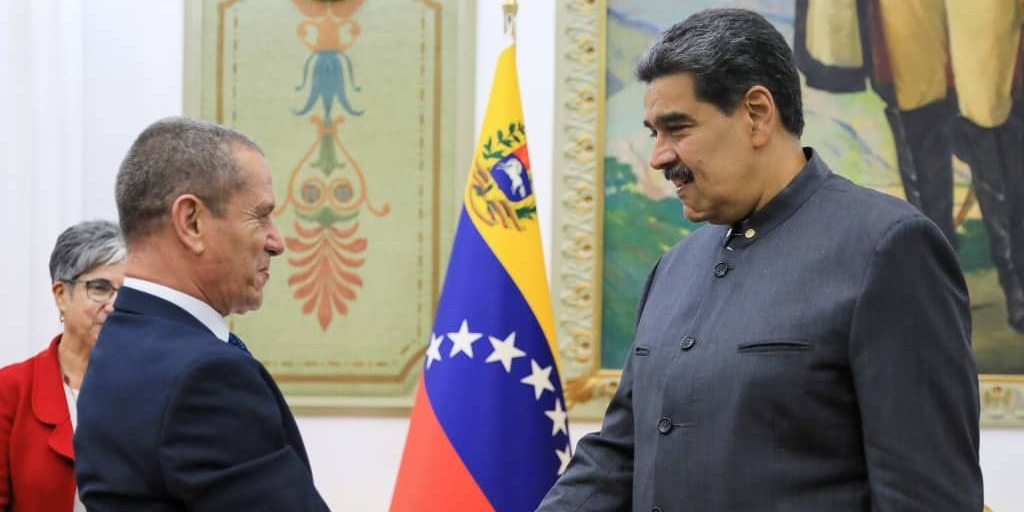استقبل الرئيس نيكولاس مادورو، رفقة نائب رئيس الجمهورية الفنزويلية، السيدة دلسي رودريغيز، الخميس، وزير الفلاحة والتنمية الريفية، محمد عبد الحفيظ هني، بمناسبة انعقاد أشغال الدورة الرابعة للجنة الحكومية المشتركة الجزائرية-الفنزويلية للتعاون الاقتصادي والتجاري والعلمي والتقني والثقافي يومي 8 و9 جوان الجاري، بكركاس عاصمة فنزويلا.