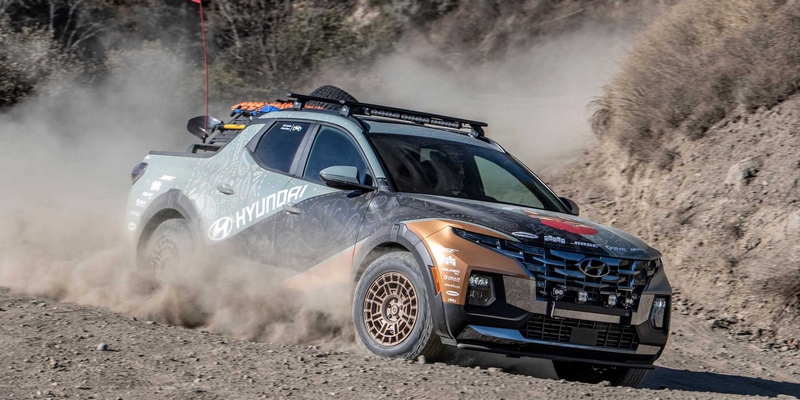 ستشارك هيونداي أيضاً بنسخة مخصصة من سيارتها البيك أب سانتا كروز، مخصصة ومعدلة للتعامل مع البيئة القاسية. توفر التعديلات خلوص أرضي مرتفع، ألواح حماية اسفل الهيكل، بالإضافة لجنوط وعجلات مخصصة للطرق الوعرة. تشمل التجهيزات الإضافية مجارف وأدوات لاستخراج العجلات العالقة في الرمال، بالإضافة لمصابيح الطرق الوعرة على السقف وعلى المصد الأمامي. ومن حيث المحركات لم تذكر هيونداي ما إذا كانت السيارة ستطلق عزم أكبر أو لا.
