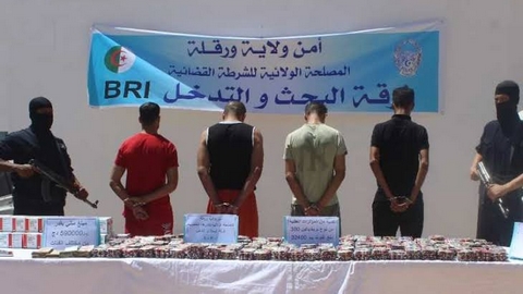تم حجز ما لا يقل عن 23427 كبسولة من المؤثرات العقلية و775.1 كلغ من المخدرات وتفكيك شبكة إجرامية تتشكل من خمسة أفراد من قبل مصالح الشرطة بالأمن الحضري الثاني بورقلة.