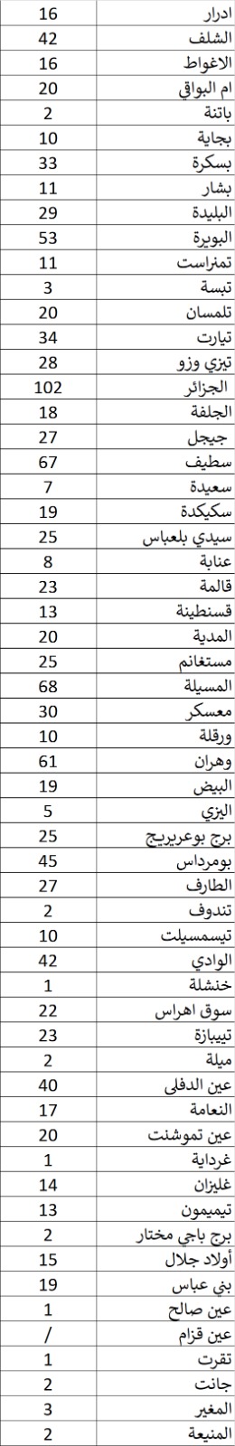 وأوضحت وزارة التجارة في بيان لها، أنه “بالتنسيق مع مصالح وزارة الفلاحة وغرف الفلاحة على المستوى المحلي وتحت إشراف السيدات والسادة الولاة، تنهي وزارة التجارة وترقية الصادرات إلى علم مربي المواشي، الموالين، وكذا المواطنين، أنه تم تحديد 1225 نقطة بيع المواشي على مستوى كافة ولايات الوطن”. وعليه، تم بولاية أدرار تحديد 16 نقطة لبيع المواشي، الشلف (21)، الأغواط (16)، أم البواقي (20)، باتنة (2)، بجاية (10)، بسكرة (33)، بشار (11)، البليدة (29)، البويرة (53)، تمنراست (11)، تبسة (3)، تلمسان (20)، تيارت (34) و28 نقطة بيع بتيزي وزو. أما بالجزائر العاصمة، حددت الوزارة 102 نقطة بيع، في حين تم تحديد 18 بالجلفة، 27 بجيجل، 67 بسطيف، 7 بسعيدة، 19 بسكيكدة، 25 بسيدي بلعباس، 8 بعنابة، 23 بقالمة، 13 بقسنطينة، 20 بالمدية، 25 بمستغانم، 68 بالمسيلة، 30 بمعسكر و10 نقاط بيع بورقلة. كما تم تحديد نقاط بيع أضاحي العيد بكل من وهران (61 نقطة)، البيض (19)، إليزي (5)، برج بوعريريج (25)، بومرداس (45)، الطارف (27)، تندوف (2)، تيسمسيلت (10)، الوادي (42)، خنشلة (1)، سوق أهراس (22)، تيبازة (23)، ميلة (2)، عين الدفلى (40)، النعامة (17)، عين تموشنت (20)، غرداية (1) و14 نقطة بيع بغليزان. هذا الإجراء سيمس أيضا، ولايات تيميمون بـ13 نقطة بيع، برج باجي مختار (2)، أولاد جلال (15)، بني عباس (19)، عين صالح (1)، عين قزام (1)، تقرت (1)، جانت (2)، المغير (3) والمنيعة (2).