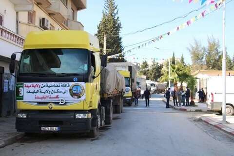 الجزائر -تنظم وزارة التجارة من خلال المديريات الجهوية والولائية والغرف التجارية، 48 قافلة للمساعدات بالمواد الغذائية المختلفة والخضر والقوامة.