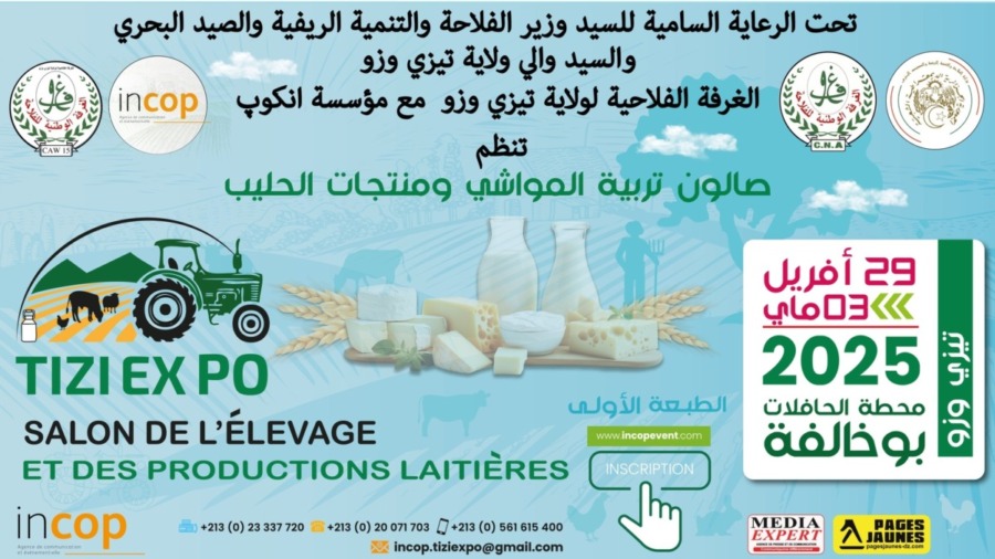 وتحت رعاية وزير الفلاحة والتنمية الريفية والصيد البحري، والي ولاية تيزي وزو، تنظم الغرفة الفلاحية لولاية تيزي وزو بالتعاون مع مؤسسة الاتصال وتنظيم المعارض (INCOP) الصالون الأول لتربية المواشي ومنتجات الحليب “TIZI AGRI EXPO”. سيقام هذا الحدث الفلاحي البارز من 29 أفريل إلى 3 ماي 2025، في مدينة تيزي وزو، بمحاذاة محطة الحافلات بوخالفة. هذا المعرض يمثل فرصة كبيرة للمزارعين والمتخصصين في مجال الفلاحة والاقتصاد الريفي لتبادل الخبرات والاطلاع على أحدث التقنيات والمعدات في قطاع تربية المواشي. ويهدف “TIZI AGRI EXPO” إلى تسليط الضوء على العديد من جوانب قطاع الفلاحة الحيوانية. ومن أبرز محاور المعرض: الإنتاج الحيواني وتربية المواشي، حيث سيتم عرض أحدث الطرق المستخدمة في تربية الحيوانات وتعزيز الإنتاجية. كما سيكون هناك تركيز على معدات تربية الحيوانات وإنتاج الحليب، التي تمثل جزءًا أساسيًا من النظام الفلاحي في الجزائر. ويتناول المعرض أيضًا، الصحة الحيوانية، وهي أحد المحاور الأساسية التي تضمن استدامة الإنتاج وجودته. بالإضافة إلى ذلك، ستتم مناقشة موضوعات متعلقة بتغذية الحيوانات، وتعقيم وصحة إنتاج الحليب، مما يسهم في تطوير أساليب العمل في هذا القطاع الحيوي. كما سيكون هناك عرض لمعدات التعقيم وتحويل الحليب والأجبان، بالإضافة إلى آليات التبريد والتخزين للحليب ومشتقاته. ويُعد المعرض منصة مثالية للشركات والمزارعين لعرض منتجاتهم والتعرف على أحدث الابتكارات في مجال صناعة الحليب. وسيشمل المعرض أيضًا، عرضًا لآليات التغليف، التعليب، والتوضيب للحليب ومشتقاته، بالإضافة إلى تجهيزات توريد وتسويق بودرة الحليب بمختلف أنواعها. كما سيقدم المعرض فرصًا لعرض منتجات الحليب وأجبانه بأنواعها المختلفة، مما يفتح آفاقًا جديدة للتوسع في السوق المحلي والدولي. ويتوقع أن يساهم المعرض في تحفيز القطاع الصناعي التحويلي، بما في ذلك إنتاج وتصدير منتجات الألبان. هذا وسيوفر الحدث أيضًا، فرصة للاطلاع على التطورات في مجال النسيج والجلود، بما يرتبط بتربية المواشي، مما يعزز الصناعات المرتبطة بتربية الحيوانات.