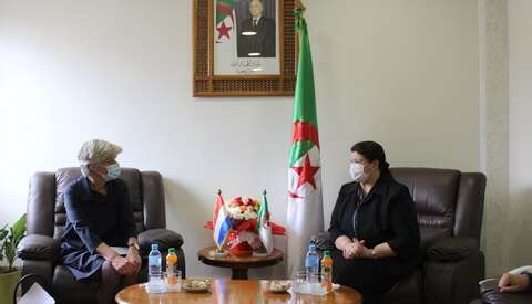 وجاء في البيان “استقبلت الدكتورة هيام بن فريحة, وزيرة التكوين والتعليم المهنيين, في مقر دائرتها الوزارية, سعادة السيدة Janna Van Der Velde, السفيرة الجديدة لمملكة هولندا بالجزائر, وبهذه المناسبة هنأت السيدة الوزيرة, سعادة السفيرة بمناسبة تعيينها بالجزائر”.