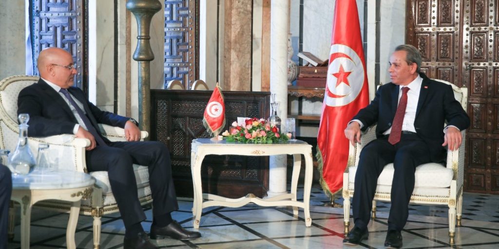 استقبل وزير التجارة وترقية الصادرات السيد الطيب زيتوني، من طرف رئيس الحكومة، السيد أحمد الحشّاني، بمقر قصر الحكومة التونسي، وهذا بحضور السيدة كلثوم بن رجب قزاح وزيرة التجارة وتنمية الصادرات، وسفير الجزائر بتونس، السيد عزوز باعلال.