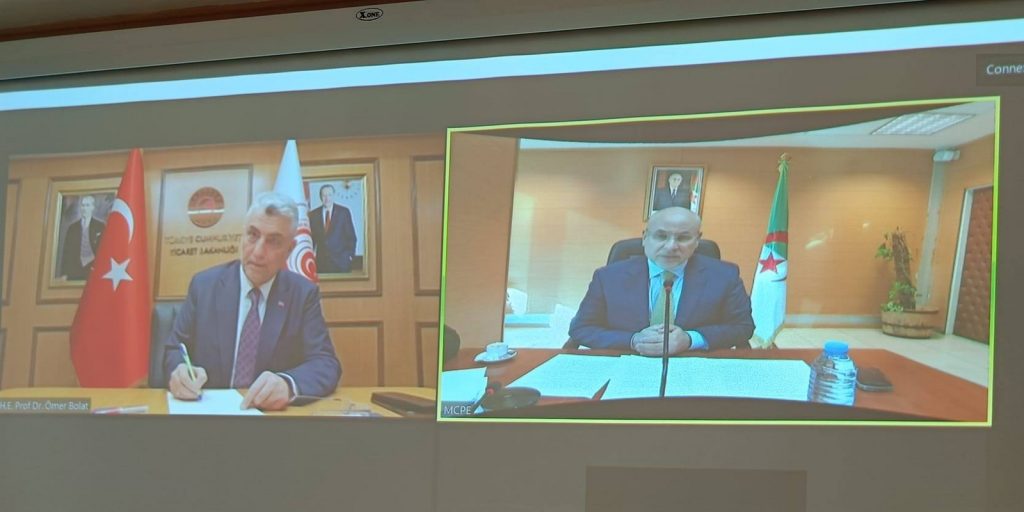 أجرى وزير التجارة وترقية الصادرات، الطيب زيتوني ، اليوم الإثنين، مباحثات مع وزير التجارة والاقتصاد التركي، السيد عمر بولات، عبر تقنية التحادث المرئي عن بعد.