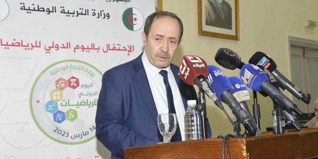 وخلال إشرافه، بالثانوية الوطنية للرياضيات، امحند مخبي بالقبة، على مراسم الاحتفاء باليوم العالمي للرياضيات، وهذا رفقة مستشار رئيس الجمهورية، المكلف بشؤون التربية والتعليم العالي والبحث العلمي، نورالدين غوالي، ووزير التكوين والتعليم المهنيين، السيد ياسين مرابي، ووزير اقتصاد المعرفة و المؤسسات الناشئة والمؤسسات المصغرة، ياسين المهدي وليد، بحضور ارئيس لجنة التربية والتعليم العالي والبحث العلمي والشؤون الدينية بالمجلس الشعبي الوطني، الشركاء الاجتماعيون والسلطات المدنية والعسكرية، كشف وزير التربية الوطنية عن النظر في محتوى التكوين الموجّه لخريجي المدارس العليا للأساتذة، لجعله يواكب التطورات الحاصلة، خاصة وأن وزارة التعليم العالي والبحث العلمي باشرت عملية إعادة النظر في محتوى التكوين على مستوى هذه المدارس، وإعطاء العناية اللازمة لفتح تخصصات في الإعلام الالي على مستوى المدارس العليا للأساتذة. وأكد وزير التربية الوطنية، أن وزارة التربية الوطنية تسعى لتجسيـد برنـامـج عمـل الحكـومة، المنبثق عـن برنـامج رئيس الجمهورية، عبد المجيد تبون، بالعمل على ترقية وتحسين تعليم الرياضيات في مختلف الأطوار التعليمية، وتشجيع التلاميذ على الالتحاق بشعبتي الرياضيات والتقني الرياضي.