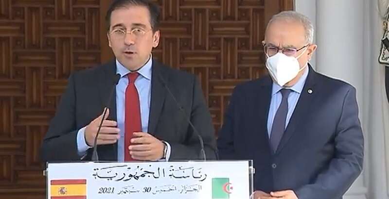 وأكد رئيس الدبلوماسية الإسبانية في تصريح للصحافة عقب جلسة عمل مع وزير الشؤون الخارجية والجالية الوطنية بالخارج، رمطان لعمامرة، أنه بخصوص الطاقة تلقيت ضمانات من السلطات الجزائرية بخصوص ضمان تموين ملائم لإسبانيا بالغاز فهناك التزام من الطرف الجزائري بتلبية الطلب الإسباني ويضمن أنبوب الغاز الأورو مغاربي، الذي دخل حيز الاستغلال سنة 1996، الإمداد بالغاز نحو إسبانيا انطلاقا من حاسي الرمل على مسافة 1400 كلم مرورا بالتراب المغربي، حيث يزود كل من إسبانيا والبرتغال بما مجموعه 10 مليار متر مكعب سنويا. من جهة أخرى، قال ألباراس، أنه اتفق مع نظيره الجزائري على تنويع وتعزيز التبادلات الجزائرية وتوسيع التعاون ليشمل، لا سيما ميادين بناء السفن والسياحة والفلاحة. وصرح الوزير الإسباني، الذي يجري أول زيارة له إلى الجزائر بصفته وزيرا للشؤون الخارجية، أن جلسة العمل قد شكلت فرصة للتطرق إلى محاور مهمة وإبراز علاقات حسن الجوار القائمة بين البلدين، وعلى الصعيد السياسي، أبرز رئيس الدبلوماسية الإسبانية تطابق وجهات النظر بخصوص عديد المواضيع، قائلا في هذا الإطار قررنا الرفع من مستوى الحوار السياسي بين البلدين قبل أن يعلن عن اجتماع سيقام قريبا في إسبانيا. وكان رئيس الجمهورية، السيد عبد المجيد تبون، قد استقبل، الخميس، بالجزائر العاصمة، وزير الشؤون الخارجية والاتحاد الأوربي والتعاون لمملكة إسبانيا، السيد خوسيه مانويل ألباراس بوينو، الذي يزور الجزائر، مرفوقا بكاتبة الدولة للتعاون الدولي وكاتبة الدولة للطاقة.