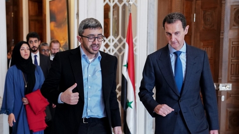 ونقلت وكالة الأنباء السورية “سانا” أن “الرئيس بشار الأسد يستقبل سمو الشيخ عبد الله بن زايد آل نهيان وزير الخارجية والتعاون الدولي في دولة الإمارات العربية المتحدة والوفد المرافق له”.
