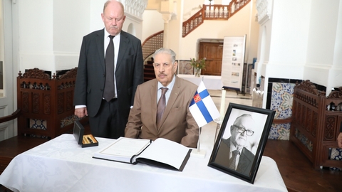 وجاء في نص التعزية: لقد تلقينا ببالغ الحزن والأسى خبر وفاة الرئيس الأسبق لجمهورية فنلنداي السيد مارتي أهتيساري يوم الاثنين 16 أكتوبر 2023، بعد مرض عضال.