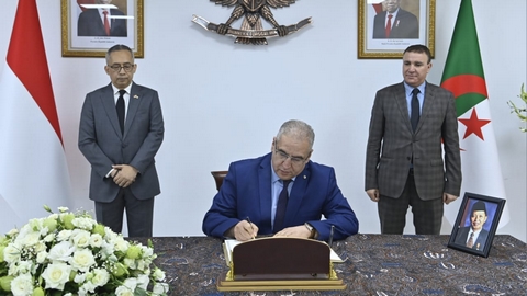 وقع يوم الإثنين الأمين العام لوزارة الشؤون الخارجية و الجالية الوطنية بالخارج, السيد الوناس مقرمان, بمقر سفارة جمهورية إندونيسيا بالجزائر العاصمة, على سجل التعازي, إثر وفاة النائب التاسع الأسبق لرئيس جمهورية إندونيسيا الشقيقة, حمزة هاز.