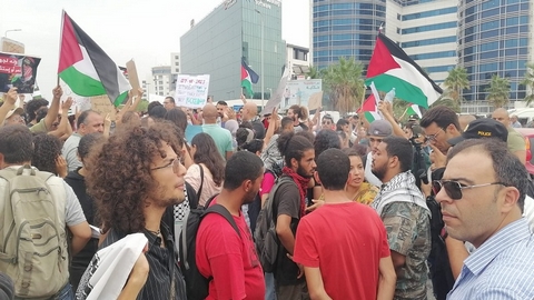 نفذ، الأحد ، عشرات من ممثلي الشبكة التونسية للتصدي لمنظومة التطبيع وعدد من المواطنين التونسيين للمرة الحادية عشر على التوالي، وقفة احتجاجية أمام سفارة الولايات المتحدة الأمريكية بضفاف البحيرة، للمطالبة بوقف العدوان على الشعب الفلسطيني و على غزة أساسا وبطرد سفير الولايات المتحدة الأمريكية بتونس.
