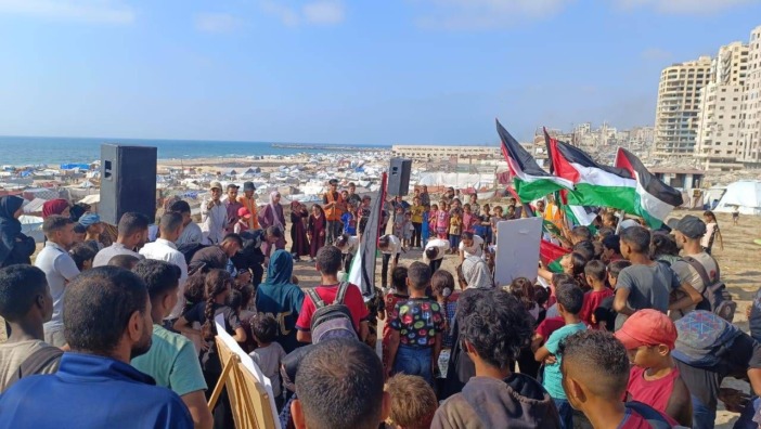تجمع مئات المواطنين في وقفة تضامنية قرب ميناء مدينة غزة دعمًا لسفينة “مادلين” التضامنية التي حاولت كسر الحصار البحري المفروض على القطاع من الاحتلال الإسرائيلي. ورفع المشاركون في الوقفة الأعلام الفلسطينية، ولافتات كُتبت عليها شعارات شكر وامتنان لركاب السفينة الذين تحدّوا الاحتلال وعبّروا عن تضامنهم الفعلي مع أهالي القطاع الذي يرزح تحت حصار مشدد منذ أكثر من 18 عامًا وتصاعد على نحو غير مسبوق في الحرب الحالية على غزة.