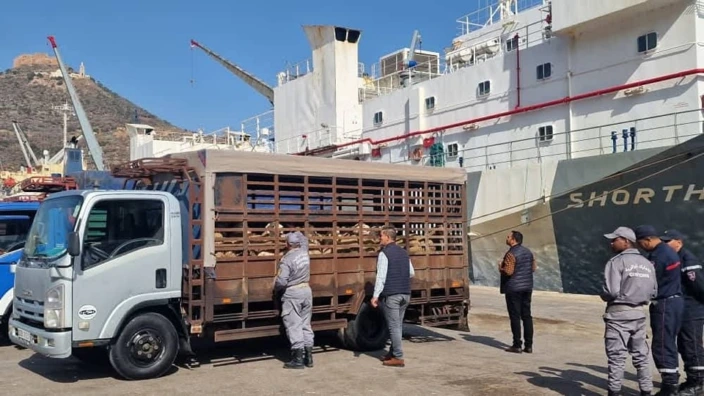 و تعتبر هذه الشحنة السابعة من نوعها حيث سجل مساء أمس الخميس رسو باخرة سادسة كانت محملة ب 15200 رأس من الغنم قادمة من رومانيا.