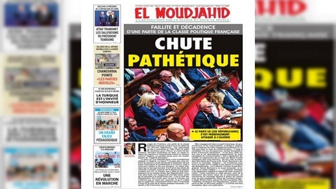 وأوضحت يومية المجاهد في افتتاحيتها التي صدرت تحت عنوان, “إنهيار وانحطاط جزء من الطبقة السياسية الفرنسية: سقوط مثير للشفقة”, أن “جزء من الطبقة السياسية الفرنسية, المنخور من الداخل, ينهار تحت تأثير الهوس الجزائري الذي تمت الإصابة به عام 1962”.