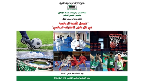 تنظم لجنة الشباب والرياضة والنشاط الجمعوي، بالمجلس الشعبي الوطني، اليوم الثلاثاء، يوما برلمانيا تحت عنوان: “تمويل الأندية الرياضية في ظل الاحتراف الرياضي “.