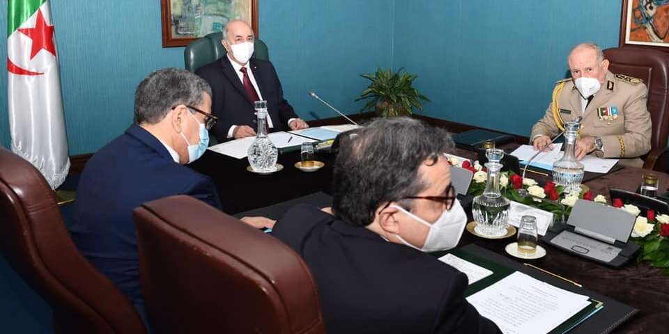 ترأس رئيس الجمهورية القائد الأعلى للقوات المسلحة وزير الدفاع الوطني عبد المجيد تبون، الإثنين، اجتماعا للمجلس الأعلى للأمن خصص لتقييم الوضع العام في البلاد في ضوء التطورات المرتبطة بجائحة كوفيد 19