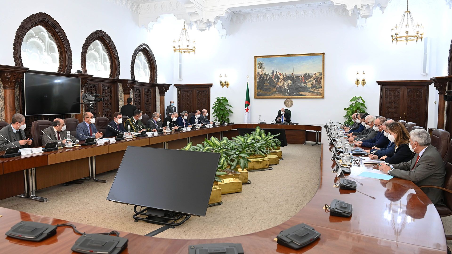 وجاء في بيان لرئاسة الجمهورية، أن رئيس الجمهورية، السيد عبد المجيد تبون، عقد اجتماعا استثنائيا، لتقييم الوضع الوبائي في البلاد، بحضور أعضاء اللجنة العلمية لرصد ومتابعة تفشي فيروس كورونا، الوزير الأول، وزير المالية، ومدير ديوان رئاسة الجمهورية، وعدد من أعضاء الحكومة، ومسؤولي الأجهزة الأمنية. بعد نقاش معمق، حول تطور الوباء، والإجراءات الوقائية الواجب اتخاذها، لوحظ بالاجماع، أن الوضعية الوبائية في بلادنا مُتحكم فيها، لحد الآن، رغم التفشي السريع للإصابات، بكوفيد-19، خاصة في الوسط المدرسي، وعليه تقرر، احترازيا، تعليق الدراسة لمدة عشرة أيام في الأطوار التعليمية الثلاث (الابتدائي، المتوسط، والثانوي)، ابتداء من الخميس 20 جانفي الجاري، أما بخصوص قرار غلق الجامعات، فيعود إلى مسؤولي المؤسسات والمراكز الجامعية، مع مراعاة رزنامة الامتحانات، وإمكانية إعادة برمجتها للطلبة. وقد أكد الاجتماع، أن التلقيح يبقى الوسيلة الوحيدة لتحقيق المناعة الجماعية، خاصة بعدما تبين أن 94 بالمائة من حالات الوفيات، جراء كوفيد-19، لم تتلق التلقيح، مشددا على ضرورة احترام جميع الإجراءات الوقائية، في كل الفضاءات التجارية، والمرافق العامة، مع تسليط عقوبة الغلق الفوري، لكل من يثبت تقاعسه، في احترام هذه الإجراءات، بما في ذلك وسائل النقل الجماعي. كما لوحظ، أن بعض الرحلات الجوية القادمة إلى الجزائر، سجلت عددا كبيرا من حالات الإصابات، ما يتطلب، فورا، تشديد الرقابة أكثر، مع تخفيض عدد هذه الرحلات إذا اقتضت الضرورة. وفي ختام الاجتماع، أسدى، السيد رئيس الجمهورية تعليماته، للوزير الأول، وزير المالية ووزير الصحة، بتوفير اختبارات الكشف، بكل أنواعها، وبكميات وافرة، مع تسهيل اقتنائها لفائدة المواطنين، في جميع مناطق البلاد وفي كل الظروف.