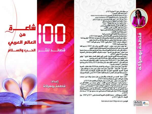صدر، مؤخرا، كتاب “مائة شاعرة من العالم العربي قصائد تنثر الحب والسلام” بلغته الأم للشاعرة والباحثة المغربية فاطمة بوهراكة بشكل ورقي باللغة العربية.