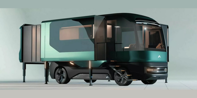 تتميز السيارة الكهربائية بجدران قابلة للتوسيع تحويلها إلى مساحة معيشة فاخرة ومكتب عمل متنقل، ما يجعل السيارة مناسبة للعائلات المتعطشة للمغامرة أو لرواد الأعمال المتنقلين. يأتي التصميم الخارجي على شكل صندوقي أنيق يضم مصابيح LED نحيفة وسقف مغطى بالألواح الشمسية. وعند توسع الجدران توفر السيارة مساحة 37 متر مربع، أي الحد الأدنى لشقة أوروبية صغيرة. ويضم التصميم غرفة المعيشة مريحة ومنطقة للمطبخ وغرفة نوم ودورة مياه، كما يمكن تحويل حجرة القيادة إلى مكتب عمل مريح بفضل الكراسي المرنة وعجلة القيادة القابلة للطي.