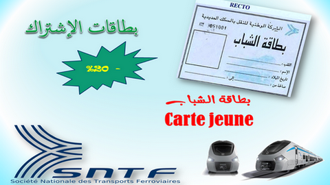 أعلنت الشركة الوطنية للنقل بالسكك الحديدة، SNTF الجزائر -، اليوم الأحد، عن تخصيص “بطاقة شباب” لفائدة الشباب الذين يتراوح أعمارهم ما بين 12 و28 سنة، وهذا للاستفادة من تخفيضات في أسعار التذاكر.