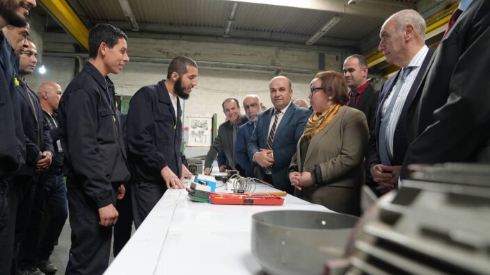 واستُهل برنامج الزيارة باستقبال رسمي بمقر الولاية، حيث تم تقديم عرض حول واقع قطاع التكوين والتعليم المهنيين بالولاية، تضمن مؤشرات التأطير وطاقة الاستيعاب والتخصصات المفتوحة، إلى جانب الجهود المبذولة لتحيين الخريطة البيداغوجية بما يتماشى مع احتياجات النسيج الاقتصادي المحلي. كما زارت الوزيرة معهد التعليم المهني بواد فالي بمنطقة واد عيسي، حيث اطلعت على سير العملية التكوينية ومعرض المهن الذي عرض نماذج من إنجازات المتربصين، إضافة إلى مركز تطوير المقاولاتية الذي يعنى بمرافقة المتكونين حاملي المشاريع وتوجيههم نحو أجهزة الدعم والتمويل. وتفقدت الورشات التطبيقية للتخصصات التقنية، كما عاينت فضاءات الحياة الاجتماعية للمتربصين، مؤكدة أهمية توفير بيئة تكوينية محفزة ومتكاملة. وتضمن برنامج الزيارة كذلك المؤسسة العمومية ENIEM، حيث اطلعت على ظروف تكوين المتمهنين في الوسط المهني، في تجسيد فعلي للشراكة بين مؤسسات التكوين والمؤسسات الاقتصادية، بما يعزز قابلية إدماج المتكونين في سوق العمل. واختُتمت الزيارة بالمعهد الوطني المتخصص في التكوين المهني “المربي إمرزوقن محمد أرزقي”، حيث أكدت نسيمة أرحاب على أهمية الرفع من جودة التأطير البيداغوجي، وتعزيز التخصصات ذات القيمة المضافة المرتبطة باحتياجات التنمية المحلية. وأكدت في ختام الزيارة، أن قطاع التكوين والتعليم المهنيين يشكل ركيزة أساسية لدعم الاقتصاد الوطني، من خلال إعداد كفاءات مؤهلة قادرة على الاستجابة لمتطلبات سوق العمل ومرافقة ديناميكية التنمية.