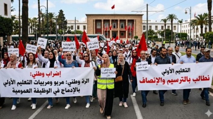 وقال التنسيق الثلاثي في بلاغ مشترك، إن ما يشهده قطاع التعليم الأولي اليوم ليس مجرد “خلل” في الأداء، بل هو “انعكاس صارخ لانهيار سياسي وأخلاقي، حيث تحولت الطفولة المبكرة من أولوية وطنية إلى سلعة رخيصة في سوق مفتوح للجمعيات الريعية، وتحت وصاية وزارة تخلت طواعية عن سيادتها لصالح “تجار الوهم التربوي”. وقال التنسيق إن الوزارة تتباهى بإحصائيات تعميم التعليم الأولي في المحافل الرسمية، لكن من ينيرون عقول الأطفال لا يزالون رهائن “اقتصاد الريع”، يعانون من أجور زهيدة تكرس الفقر ولا تصون كرامة الإنسان، ومن تشغيل هش يفتقر إلى أدنى مقومات الاستقرار والحماية الاجتماعية، ومن ابتزاز ممنهج تحت تهديد التكليفات التعسفية والإقصاء. ووصف التنسيق ما يحصل في القطاع بأنه “سياسة استغلال مقنن بامتياز، حيث تتحول الجمعيات الوسيطة إلى شركات لاستنزاف المال العام وتكديس الأرباح، تحت غطاء العمل التطوعي”. وأكد أساتذة التعليم الأولي أن استمرار هذه الوضعية يؤكد أن منطق التدبير المفوض لم يكن سوى غطاء لتفريغ المدرسة العمومية من محتواها التربوي، وتحويلها إلى سوق للاستثمار الرخيص. وجدد التنسيق، المطالبة بالإدماج الفوري والشامل لجميع أساتذة وأستاذات التعليم الأولي في سلك الوظيفة العمومية، ضمن النظام الأساسي الخاص بموظفي وزارة التربية الوطنية والتعليم الأولي والرياضة. وإسقاط نموذج الجمعيات والتدبير المفوض بشكل نهائي، قطعا مع “التربية بالتقسيط” الذي أثبت فشله، وتحول إلى آلية لاستنزاف المال العام واستغلال الشغيلة.
