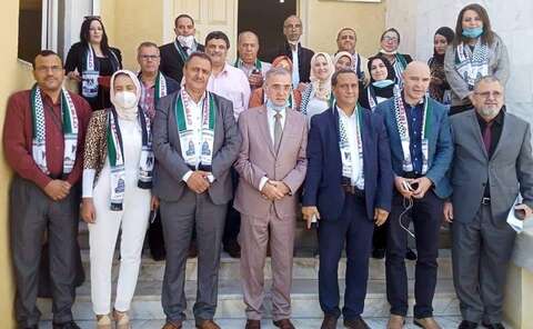 وذكر بيان لسفارة فلسطين بالجزائر،أمس، عن قيام وفد يمثل الاتحادية الوطنية للمجتمع المدني بزيارة للسفارة، حيث كان في استقبالهم السفير أمين مقبول، إضافة إلى عدد من أعضاء السفارة، والتي ينضم تحت لوائها عدد كبير من الجمعيات ومؤسسات المجتمع المدني في عديد الولايات.وأضاف البيان ، ان اللقاء ساده نقاش فكري عال، حيث عبر فيه كل أعضاء الوفد، عن مشاركتهم نضال الشعب الفلسطيني، وان فلسطين والجزائر كيان واحد، مشددين الوقوف مع فلسطين وهو التزام قومي واسلامي وانساني، ، منددا بصفقة القرن وضد التطبيع.و أوضح البيان، أن الاتحادية الوطنية للمجتمع المدني، في خندق واحد في النضال، وجاهزون لنكون كما تريدون الكتف بالكتف واليد باليد، حيث قال الرئيس تبون “القضية الفلسطينية مقدسة لدى الشعب الجزائري”، من جهته قدم السفير الفلسطيني، تشكراته للوفد على هذه المبادرة الطيبة، ومن خلالهم قدم الشكر للشعب الجزائري قيادة وشعبا على مواقف الجزائر التي يقدرها الشعب الفلسطيني، والتي كانت وستبقى الشقيقة الجزائر مثالا طيبا وعاليا، في تضامن الأخوة والأشقاء في كل المناسبات.كما شرح السفير أمين مقبول، لأعضاء الاتحادية الظروف والأوضاع التي يعيشها الشعب الفلسطيني، والتحديات التي يواجهها على اكثر من صعيد، وانه رغم كل ذلك ، يبقى صامد وصابر ولديه اليقين بتحقيق النصر، بالعودة وإقامة الدولة الفلسطينية المستقلة وعاصمتها القدس الشريف، وفي ختام اللقاء، قدم درع الاتحادية للأخ السفير ، التي تعد بمثابة هدية رمزية تجسد العلاقة التاريخية بين الجزائر وفلسطين.