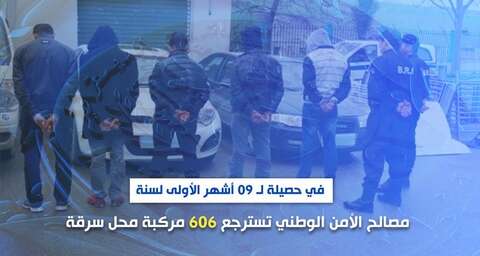 وأوضح نفس المصدر أنه “في إطار محاربة الجريمة المنظمة، لاسيما ما تعلق بسرقة المركبات، تمكنت المصالح المختصة للمديرية العامة للأمن الوطني، خلال الفترة الممتدة من 01 جانفي إلى 30 سبتمبر 2021، من استرجاع 606 مركبة من بينها مركبات كانت محل بحث دولي مع توقيف 438 شخص مشتبه فيه، تم تقديمهم أمام الجهات القضائية المختصة.