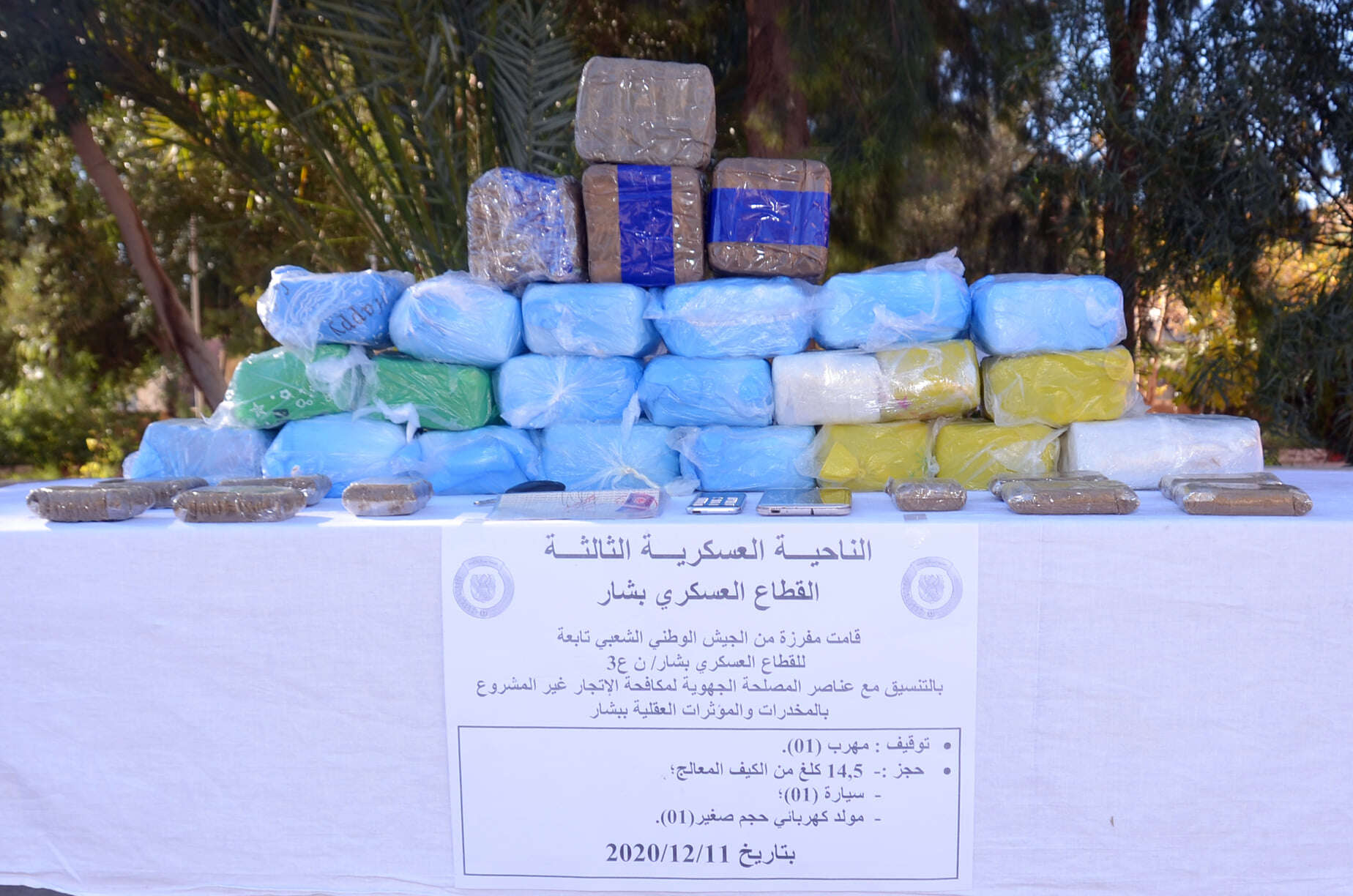 كمانفذت وحدات ومفارز للجيش الوطني الشعبي خلال الفترة الممتدة من 09 إلى 15 ديسمبر الجاري عدة عمليات متفرقة أسفرت عن توقيف 38 تاجر مخدرات وحجز كميات كبيرة من الكيف المعالج قدرها 7 قناطير و22 كيلوغرام أدخلت عبر الحدود مع المغرب، حسبما أورده بيان لوزارة الدفاع الوطني.