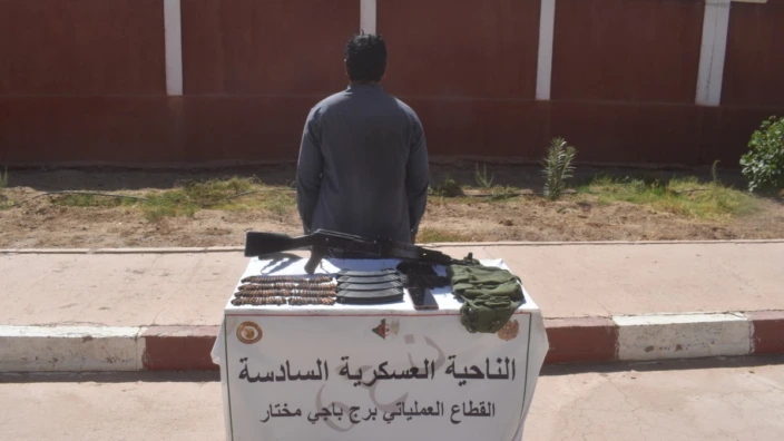 ففي إطار مكافحة الإرهاب و”بفضل جهود وحدات الجيش الوطني الشعبي, سلم الإرهابي المسمى التيباري حافظ, المكنى (قعساوي) نفسه للسلطات العسكرية ببرج باجي مختار بالناحية العسكرية السادسة, وبحوزته مسدسا رشاشا من نوع كلاشينكوف وكمية من الذخيرة وأغراض أخرى”.