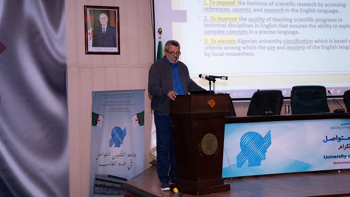 أشرف مدير جامعة التكوين المتواصل (ديدوش مراد)، يحي جعفري، بمقر رئاسة الجامعة بدالي إبراهيم-الجزائر، على إعطاء إشارة انطلاق تكوين الدفعة الأولى من الأساتذة الجامعيين في تخصص ليسانس اللغة الإنجليزية التقنية كشهادة جامعية ثانية، الذي تتكفل به جامعة التكوين المتواصل.