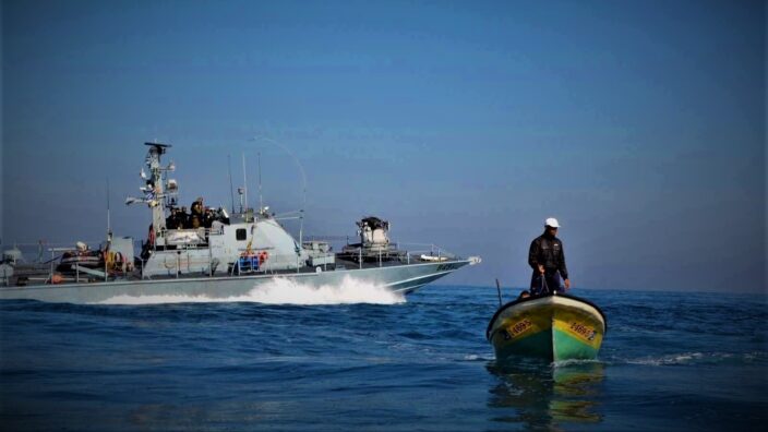 وبين زوارق الاحتلال الحربية تطلق النار في عرض بحر دير البلح وخانيونس بقطاع غزة.