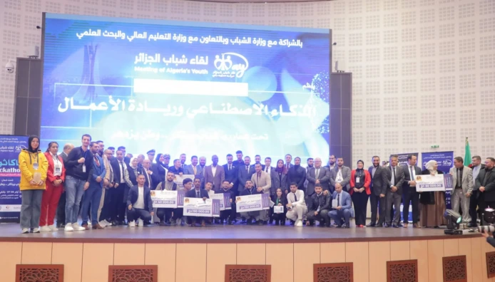 أشرف نورالدين واضح، وزير اقتصاد المعرفة والمؤسسات الناشئة والمؤسسات المصغرة، رفقة مصطفى حيداوي، وزير الشباب، المكلف بالمجلس الأعلى للشباب، يوم الخميس ، بالقطب التكنولوجي والعلمي الشهيد عبد الحفيظ إحدادن، بسيدي عبد الله، على اختتام فعاليات الصالون الوطني للذكاء الاصطناعي وريادة الأعمال، المنظم من طرف لقاء شباب الجزائر، بالشراكة مع وزارة الشباب، وبالتعاون مع وزارة التعليم العالي والبحث العلمي، تحت شعار “شباب يبتكر… وطن يزدهر.