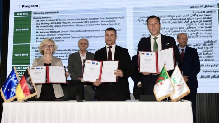وتم إطلاق هذا المشروع, الممول من طرف الاتحاد الأوروبي والممتد على 8 أشهر, بموجب اتفاقية وقعها كل من المدير العام للوكالة الجزائرية لترقية الاستثمار, عمر ركاش, وسفير الاتحاد الأوروبي بالجزائر, دييغو ميلادو باسكوا وكذا رئيسة المشروع, المديرة العامة بالوزارة الألمانية غيرلاند هيكمان, بحضور ممثلة سفارة ألمانيا بالجزائر ورئيس مجلس التجديد الاقتصادي الجزائري, كمال مولى, وممثلي البرلمان وعدة إدارات وتم اعداد البرنامج بمشاركة عدة مؤسسات ألمانية على غرار الوكالة الألمانية للتجارة والاستثمار, بنك الاستثمار لولاية براندنبورغ والوكالة الألمانية للتعاون الدولي, وفقا لعرض قدمته رئيسة المشروع. ويهدف هذا البرنامج المعنون بتعزيز قدرات الوكالة الجزائرية لترقية الاستثمارات إلى تدعيم القدرة التنافسية للاقتصاد الجزائري وزيادة جاذبيته للاستثمارات الوطنية والأجنبية, بما ينسجم مع توجهات السلطات العمومية الرامية إلى تنويع الاقتصاد الوطني وتشجيع الاستثمار المنتج وفقا للشروحات المقدمة خلال الحدث وسيسمح البرنامج للوكالة بتعزيز قدراتها التقنية عبر تبادل الخبرات مع الجانب الألماني في مجالات استهداف وجذب ومرافقة المستثمرين, إضافة الى تحديث أساليبها الترويجية بالاعتماد على أساليب مبتكرة في التواصل وتحليل الأسواق, وكذا تطوير مقاربات استباقية لاستقطاب الاستثمارات التي تخلق قيمة مضافة وفرص عمل ونقل التكنولوجيا في القطاعات ذات الأولوية. كما سيمكن الوكالة من تحسين تسيير البيانات الاقتصادية ومؤشرات الاستثمار من خلال الرقمنة وأتمتة أنظمة المتابعة والتقييم, فضلا عن تعزيز جودة خدماتها المقدمة للمستثمرين من خلال فهم أفضل لاحتياجاتهم وتقديم مرافقة مخصصة لهم في مختلف مراحل مشاريعهم وفي كلمة له بالمناسبة, اعتبر السيد ركاش هذا البرنامج خطوة نوعية جديدة في مسار التعاون بين الوكالة ونظرائها في دول الاتحاد الأوروبي, في مجال ترقية الاستثمار وتعزيز القدرات المؤسساتية, فضلا عن كونه يندرج في إطار رؤية الوكالة لتحديث آليات عملها, بما يمكنها من المساهمة في تنفيذ الاستراتيجية الوطنية الهادفة إلى تعزيز تنافسية الاقتصاد الوطني وتحسين مناخ الأعمال, ورفع جاذبية الجزائر أمام الاستثمارات الوطنية والأجنبية. وكشف عن برنامج آخر في نفس الإطار خاص بالبرمجة المالية بالشراكة مع الاتحاد الأوروبي كما يأتي هذا التعاون, حسب السيد ركاش, في سياق تعمل فيه الوكالة على تعزيز قدراتها في مجال الرقمنة واستغلال البيانات المتعلقة بالاستثمار واستهداف الاستثمارات المستدامة ذات القيمة المضافة العالية, انسجاما مع التوجهات الاستراتيجية لرئيس الجمهورية, السيد عبد المجيد تبون, الرامية إلى جعل الاستثمار محركا رئيسيا للنمو الاقتصادي المستدام, ودعامة لسيادة القرار الاقتصادي الوطني.